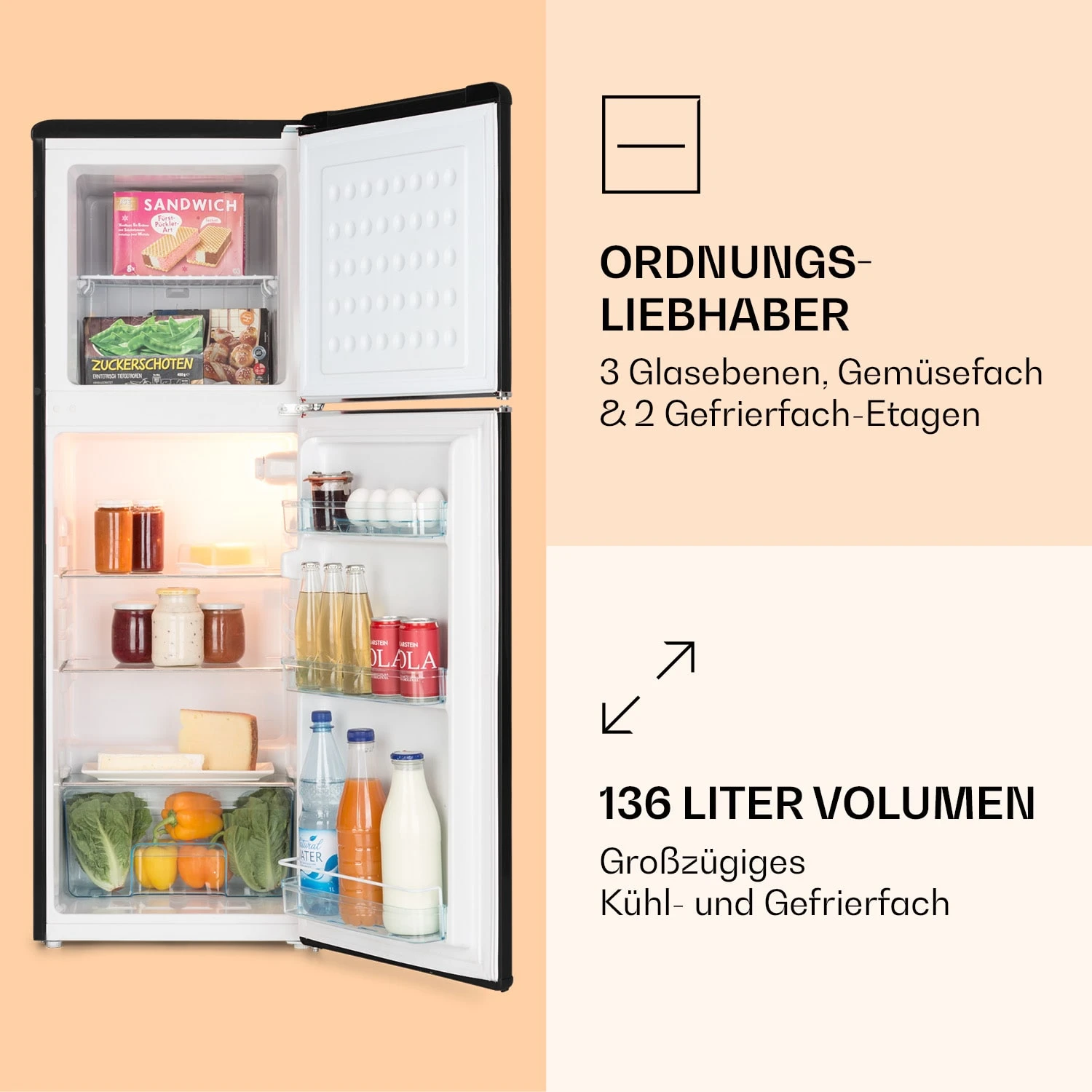 Audrey Kühl- & Gefrierkombination 97l/39l Retro-Look 2 Böden