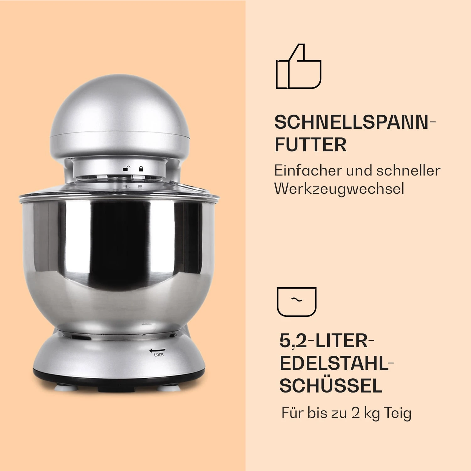 Bella Küchenmaschine 2000 W / 2,7 PS 5 Ltr Edelstahl BPA-frei