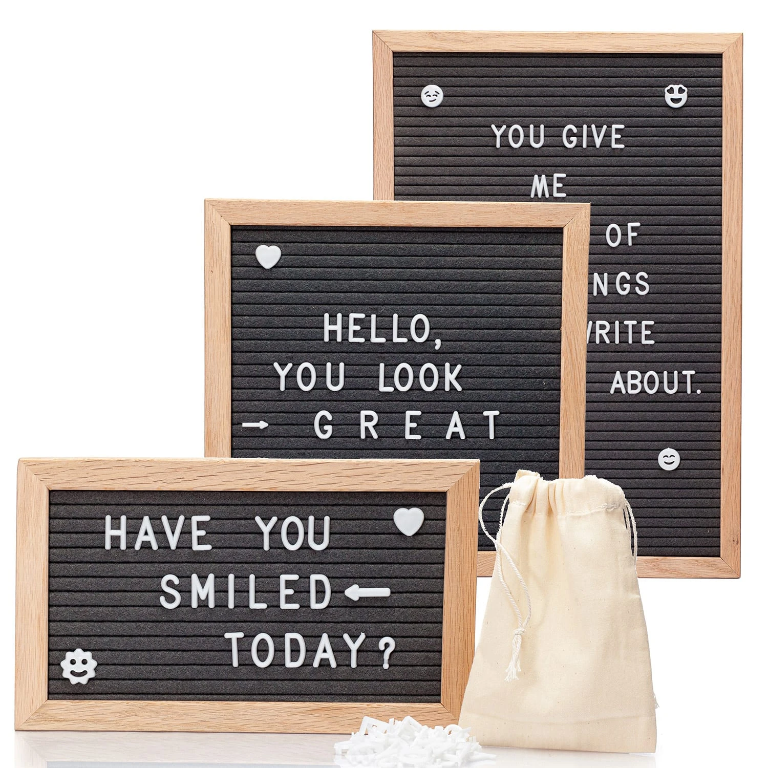 Das trendige blumfeldt Letterboard der Größe 25 x 15 cm besitzt eine Aufhängevorrichtung sowie einen Holzständer. Damit kannst du die Memotafel als Dekoration auf deinem Schreibtisch, an der Wand, auf der Kommode oder in der Küche benutzen. Die Buchstabentafel lässt sich nach Lust und Laune „bestecken“. Hier findet sich genug Platz für deine Lieblingssprüche, Memos, To Do-Listen, Ideen, Nachrichten, Menüs und Terminplanungen! Mit der großen Auswahl an 340 weißen Buchstaben und Symbolen kannst du jeden beliebigen Satz schreiben.