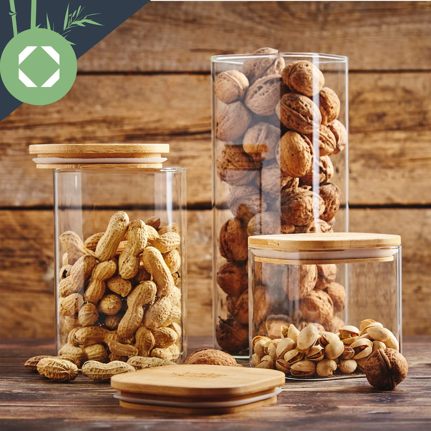 - eckiges Vorratsglas mit Bambusdeckel