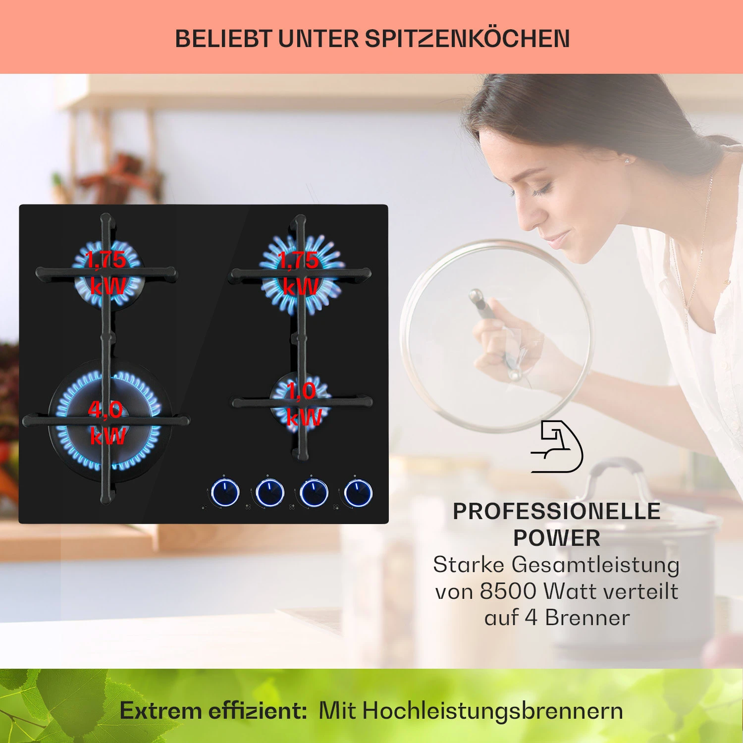 Eine Zeit lang fast vergessen, aber jetzt wieder da: Der Gasherd, der mit seinen unschlagbaren Vorteilen auch in der modernen Küche seinen Platz hat. Gas ist nicht nur effizienter und umweltschonender, es ist auch viel kontrollierbarer und somit praktischer als Kochen mit Strom. Das Klarstein Illuminosa 4 Gaskochfeld bringt nun diese Möglichkeit in deine Küche.