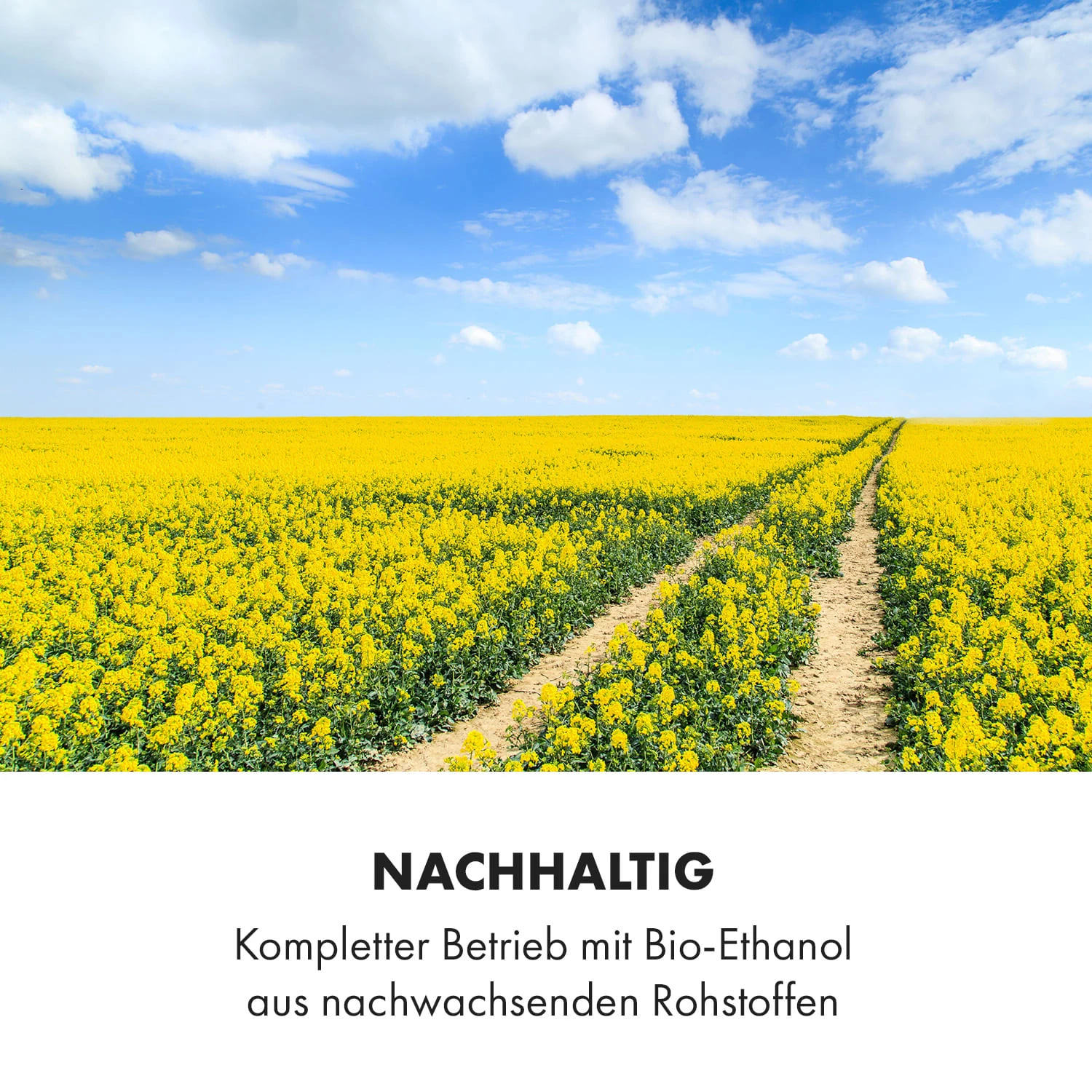 Die Bedienung des Kamins ist denkbar einfach: Ethanol in die Brennkammer einfüllen, anzünden, fertig! Dabei benötigt der Phantasma Manor Ethanol-Kamin keinen Abzug, sodass du ihn überall aufstellen kannst, wo ruß- und rauchloser Feuerzauber gefragt ist. Sein Design im Stil eines Landhaus-Kamins prädestiniert ihn dabei als zentrales Element im modernen oder klassischen Wohnzimmer. Die doppelwandige Brennkammer aus pulverbeschichtetem Stahl sorgt für die nötige Sicherheit beim Brennvorgang. Für noch mehr Kaminatmosphäre ist ihr Inneres mit täuschend echten Holzscheiten bestückt. Der Sicherheitsbrenner mit Keramikisolierung hat eine Brenndauer von bis zu 2,5 Stunden und sorgt mit etwa 3,4 kW Heizleistung für Wärme in Räumen bis 30 m². Die Flamme kann dank der Löschhilfe absolut unkompliziert gelöscht werden.