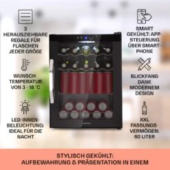 Coachella 50 Weinkühlschrank 47 Liter WiFi-Funktion Hintergrundbeleuchtung Edelstahl