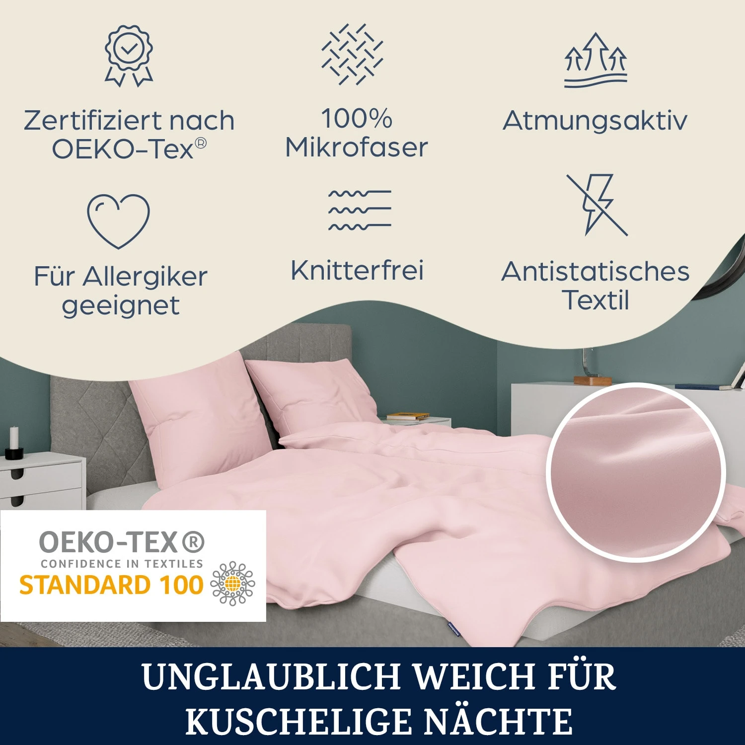 - Hygienisch waschbar bei 60 Grad