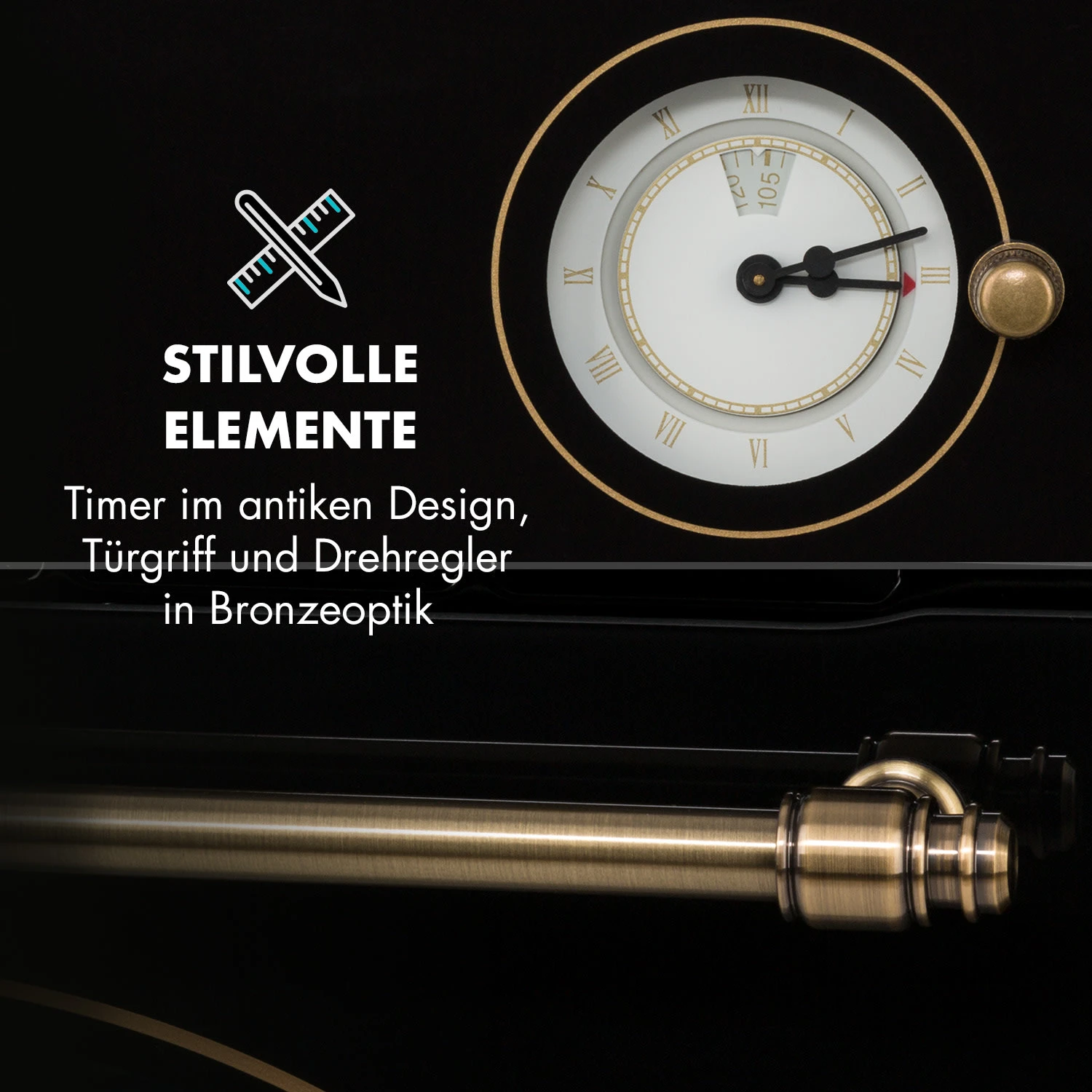 Victoria Einbaubackofen Retro-Design 9 Funktionen 50-250°C Schwarz