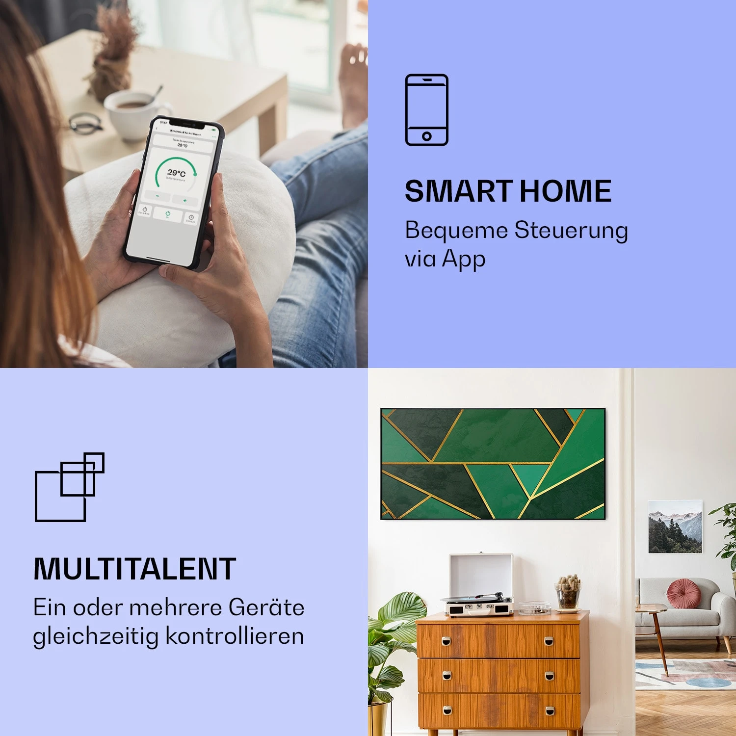 Wonderwall Air Art Smart Infrarotheizung Grüne Linie 120x60cm 700W